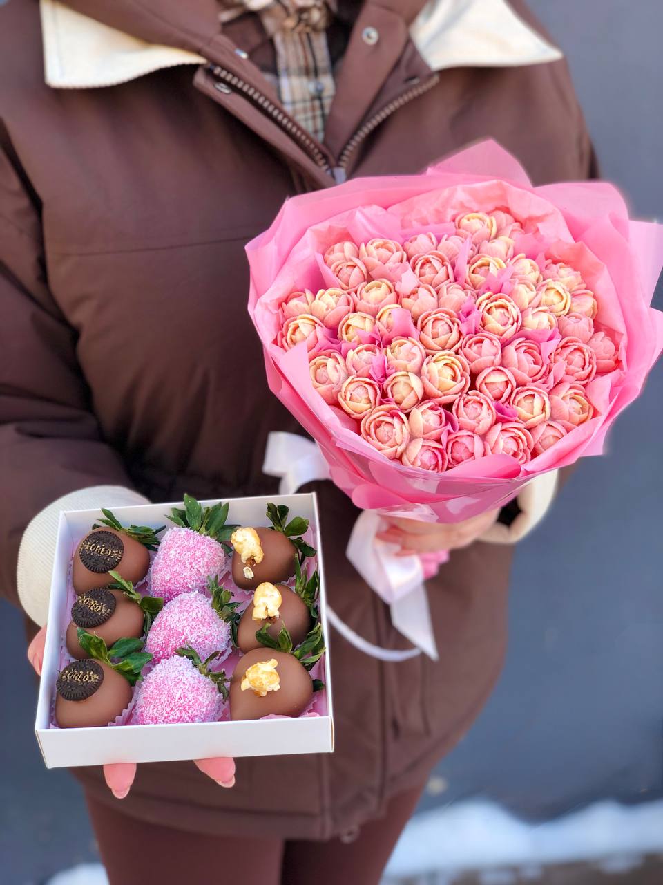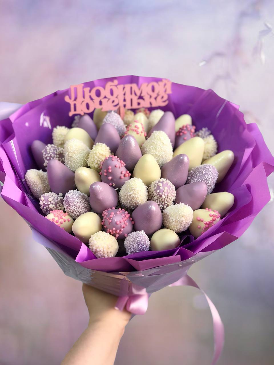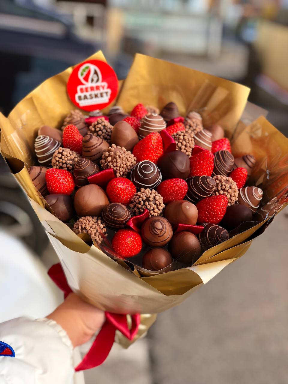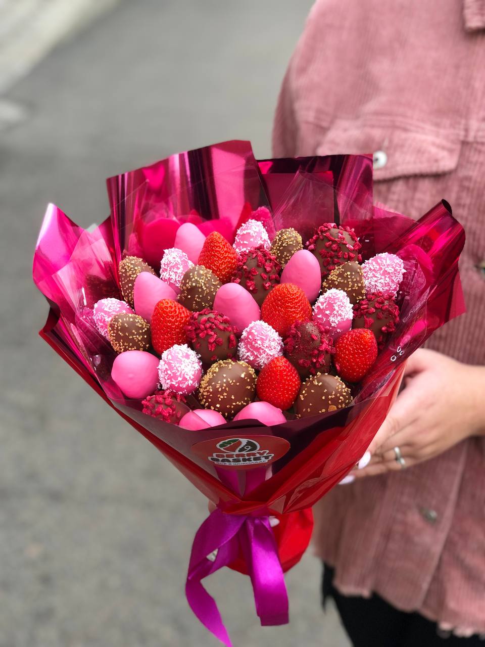 Наши букеты — это свежие ягоды в премиум-шоколаде Callebaut, которые не только вкусные, но и выглядят как настоящее произведение искусства. Качество и стиль в каждой детали.