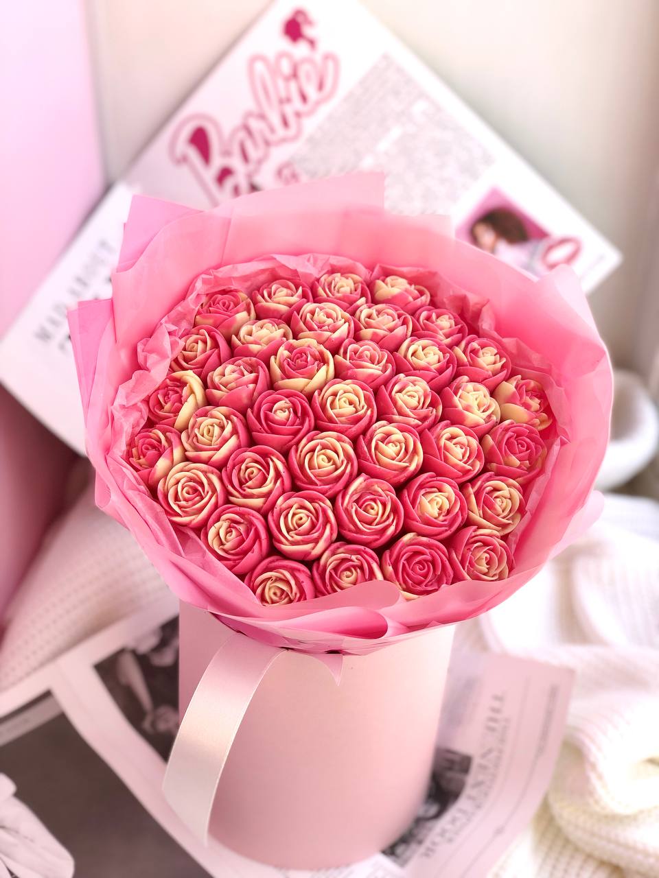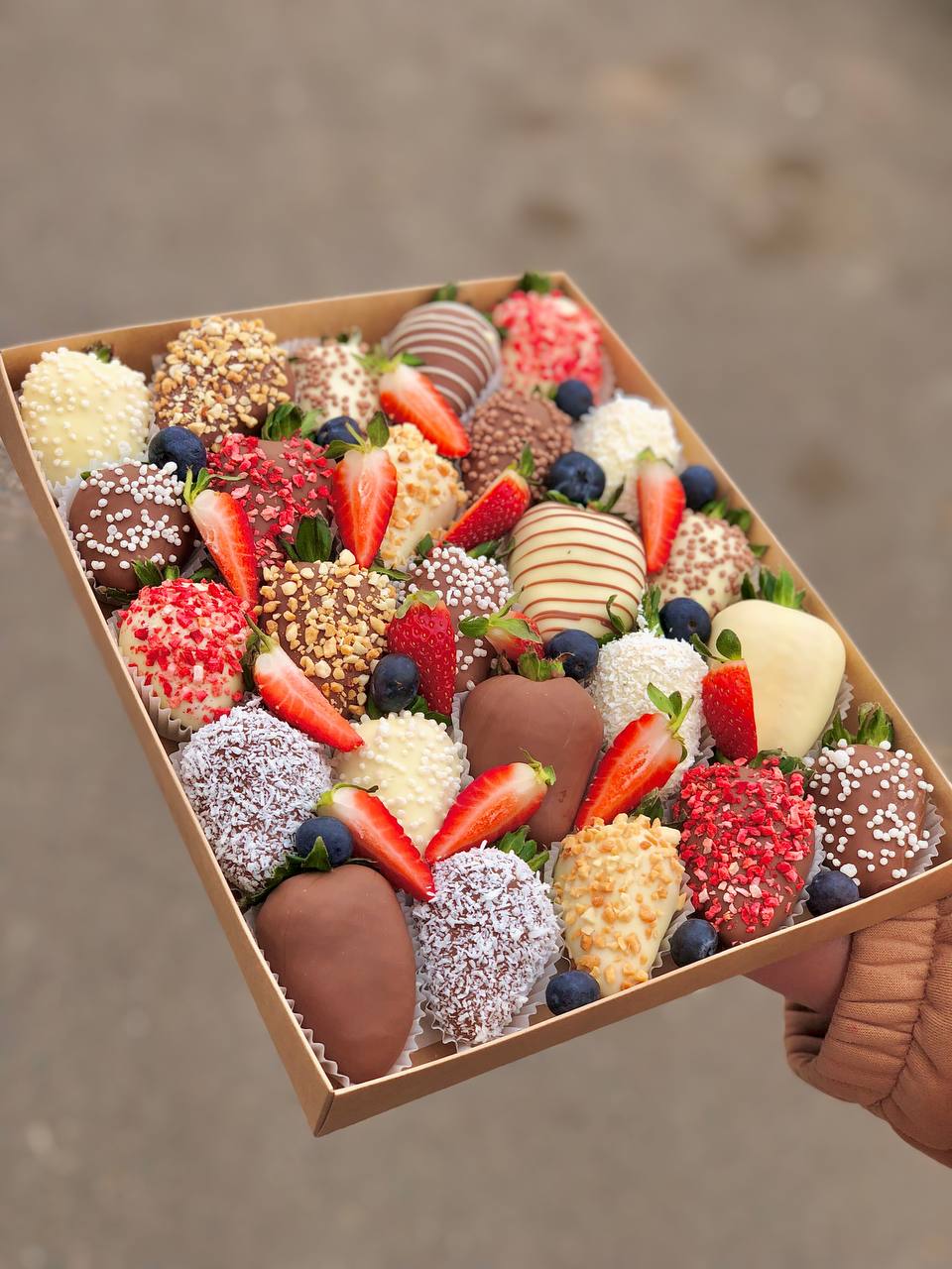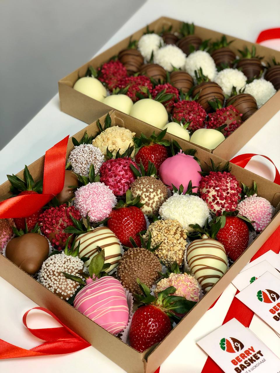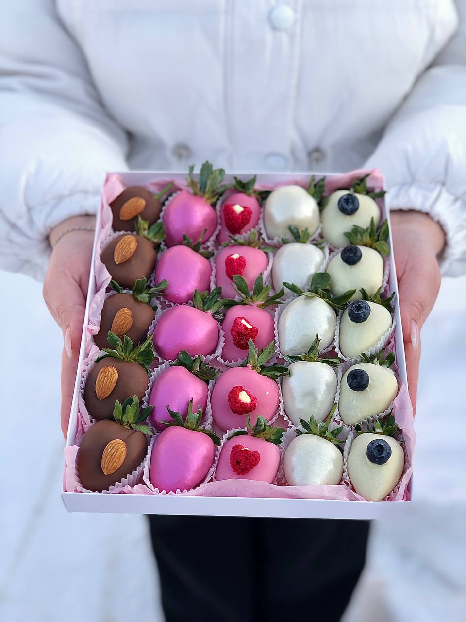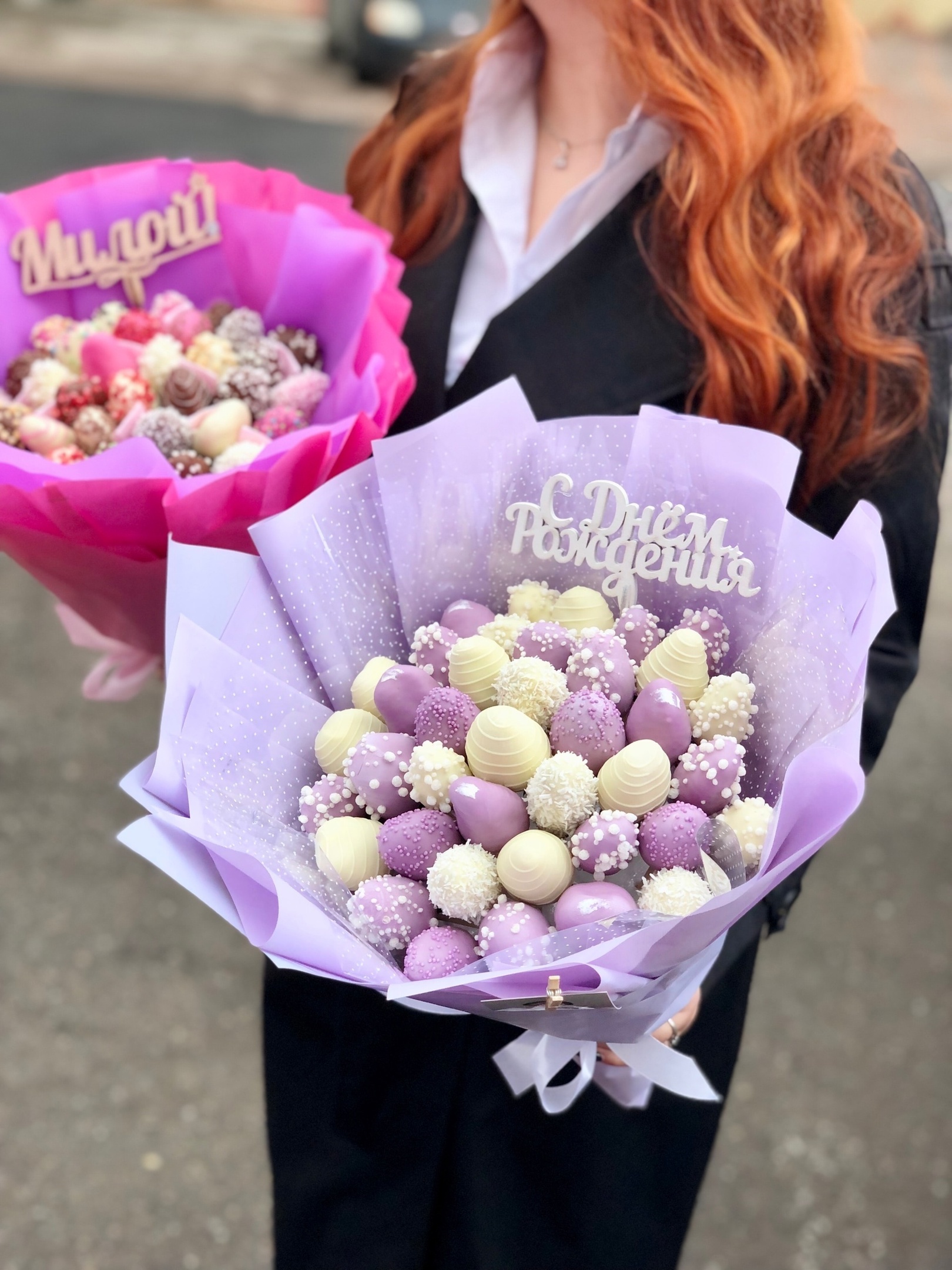 Наши букеты — это свежие ягоды в премиум-шоколаде Callebaut, которые не только вкусные, но и выглядят как настоящее произведение искусства. Качество и стиль в каждой детали.